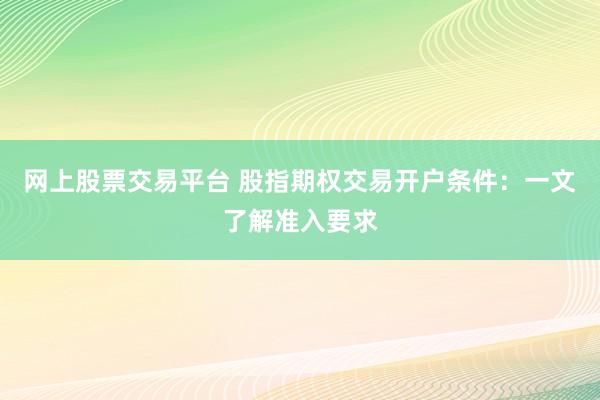股指期权作为一种重要的金融衍生品,为投资者提供了对冲风险、增强收益的有效工具。然而,由于其交易的复杂性和潜在风险,监管机构对股指期权交易的开户条件设置了较为严格的准入要求。本文将详细解读股指期权交易的开户条件网上股票交易平台,帮助投资者了解准入要求,评估自身是否具备参与股指期权交易的资格。